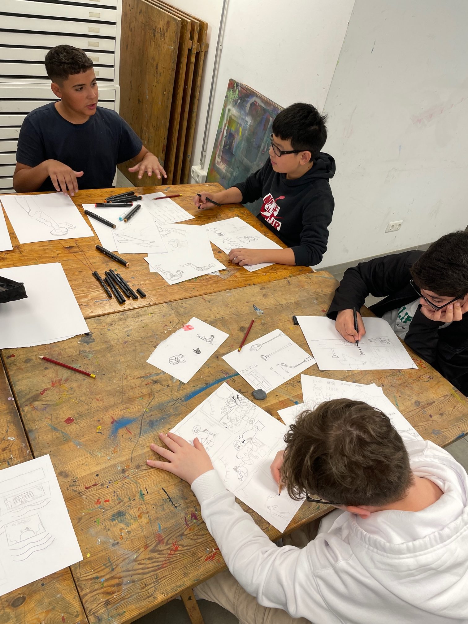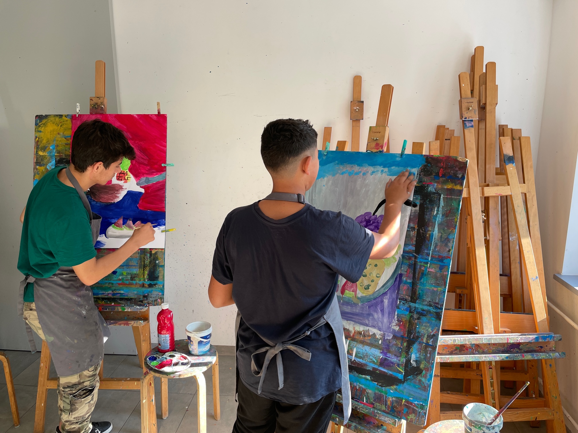Die SchülerInnen der Klasse 7.4 haben am 26. September 2023 einen Ausflug zur Jugendkunstschule in Lichtenberg unternommen. Dort konnten sie in vier verschiedenen Werkstätten versteckte Talente entdecken. An der Staffelei sind bunte Kunstwerke entstanden,