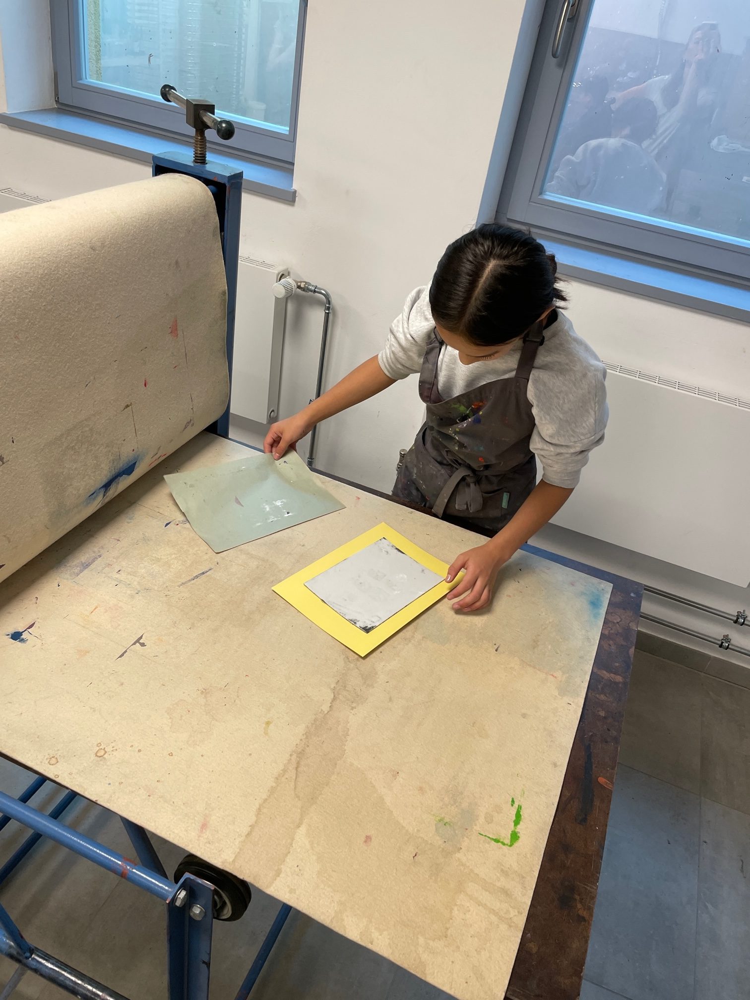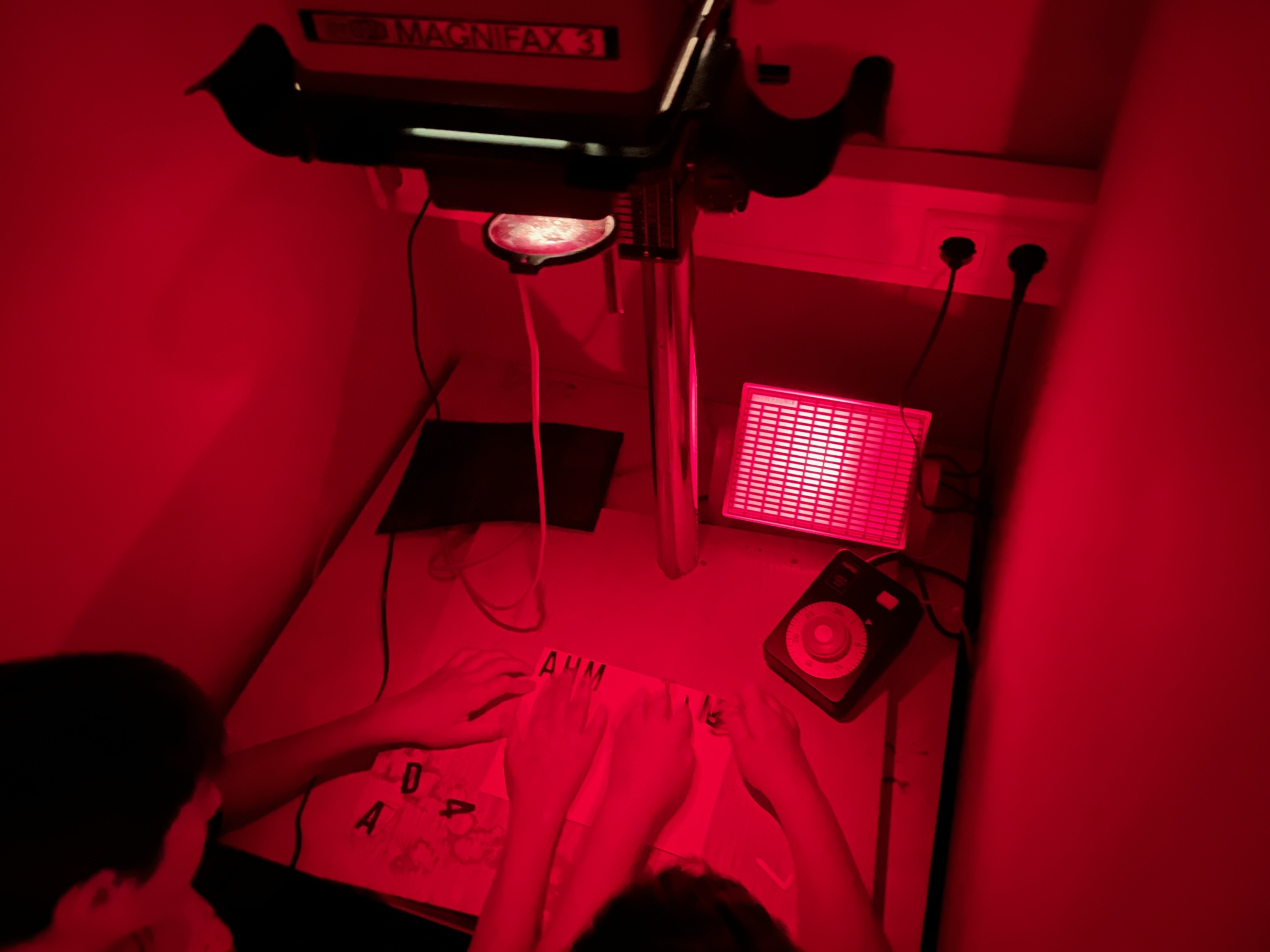 der Druckplatten gefragt. In einem Fotolabor hat die vierte Gruppe eigene schwarz-weiß Fotografien aufgenommen und entwickelt.