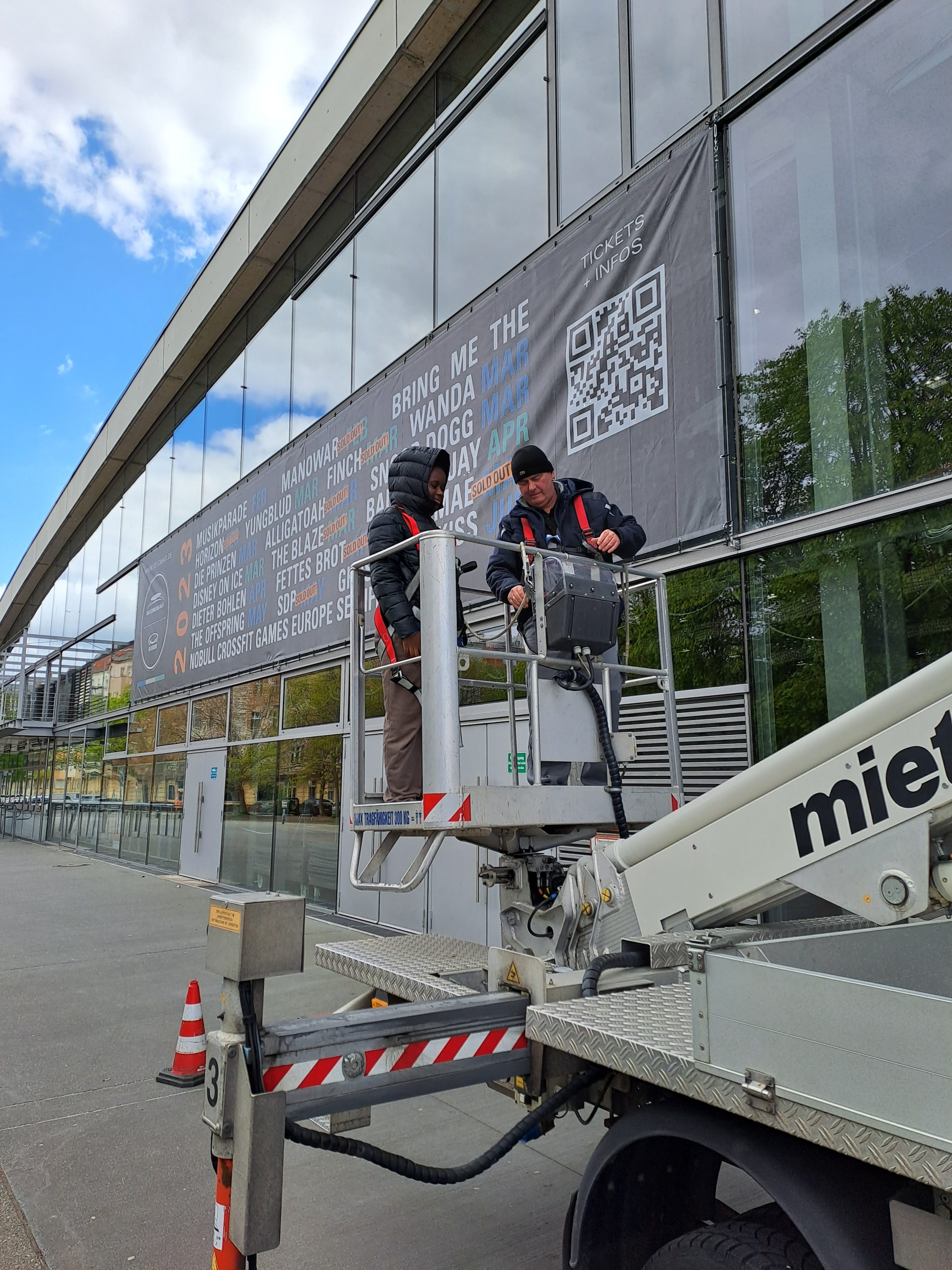 bestand die Möglichkeit sich in ca. 5 m Höhe ziehen zu lassen um einen Eindruck davon gewinnen zu können, wie das Arbeiten in luftiger Höhe ist. Auch durften sie sich an den