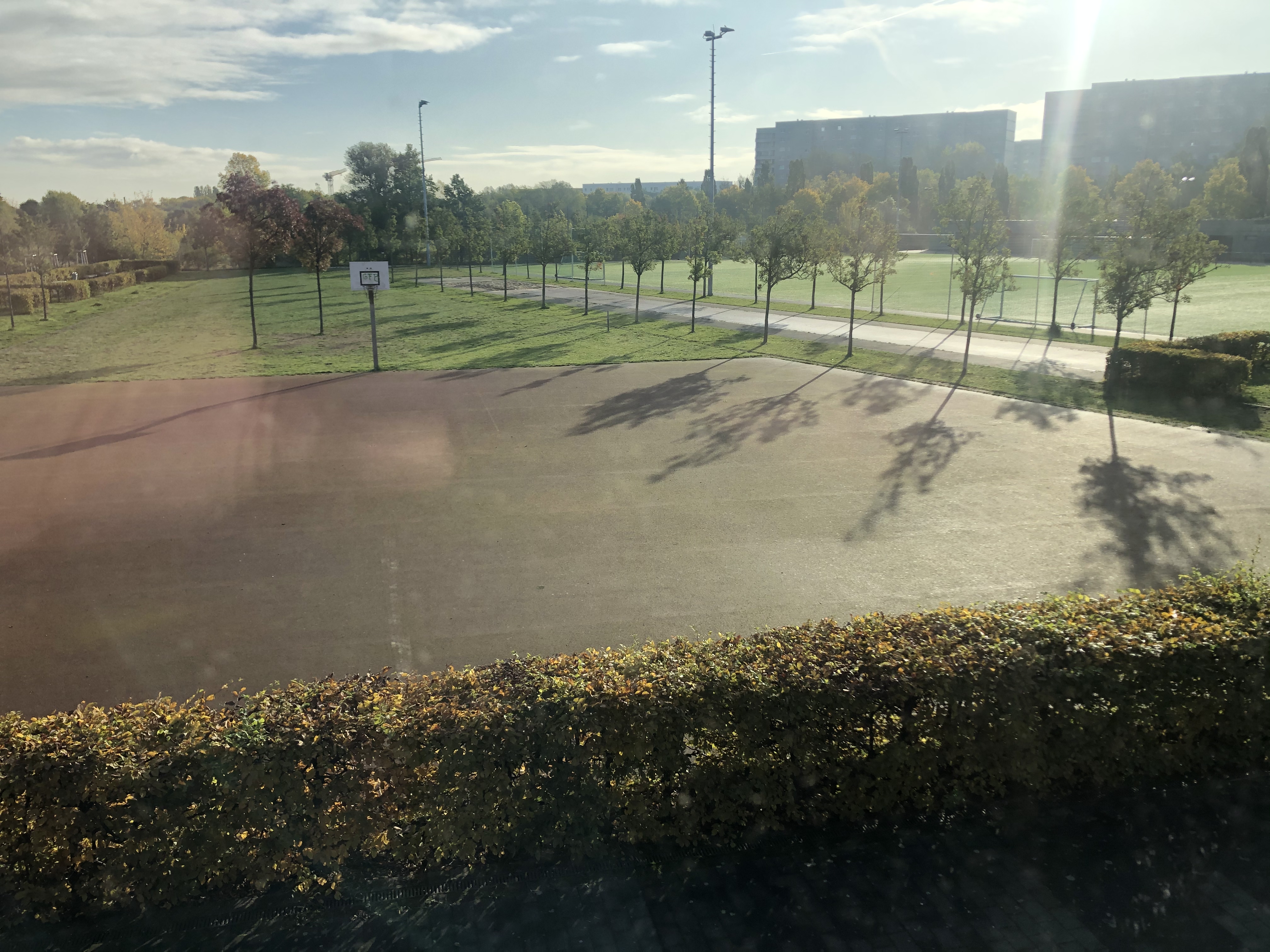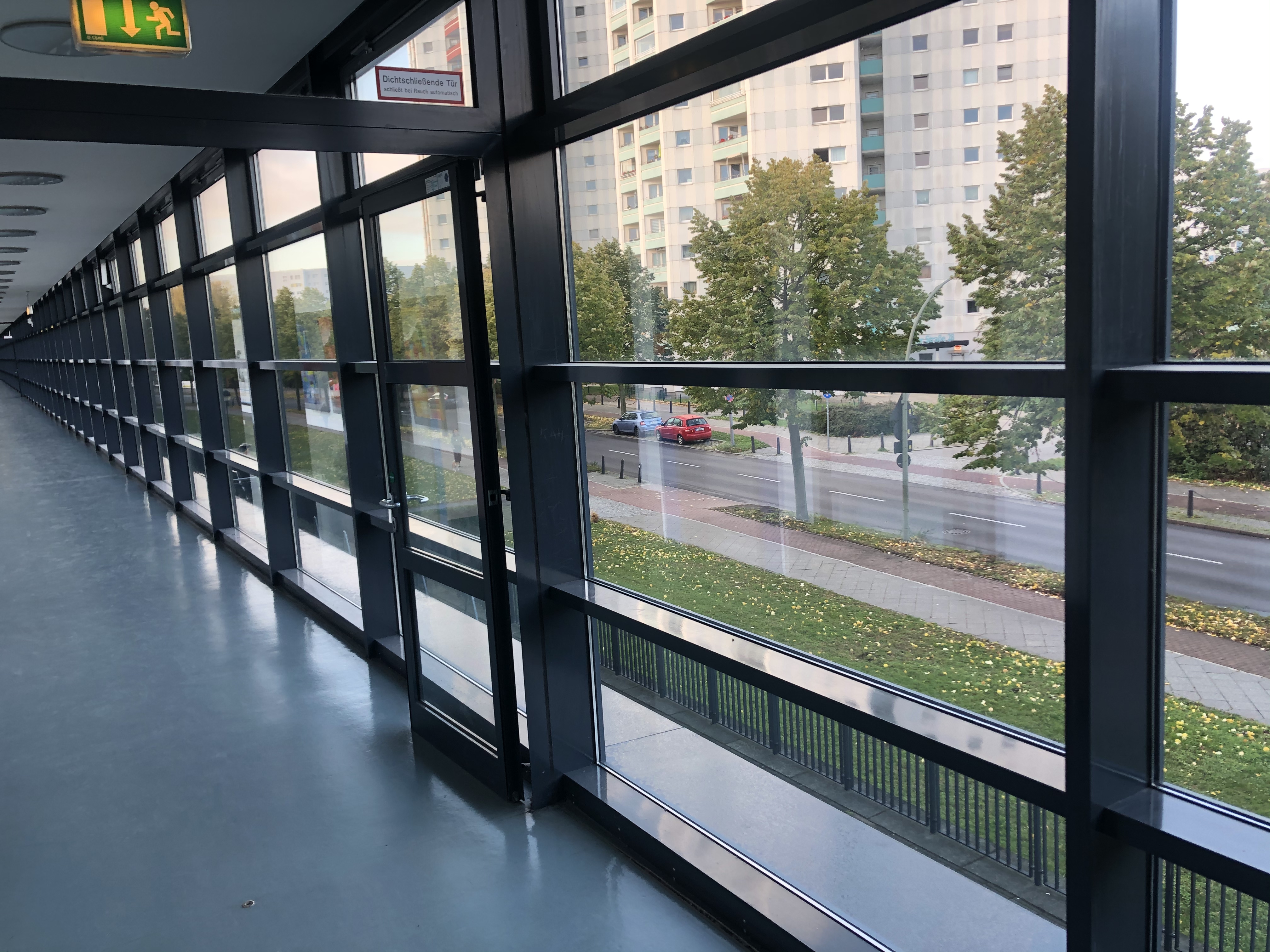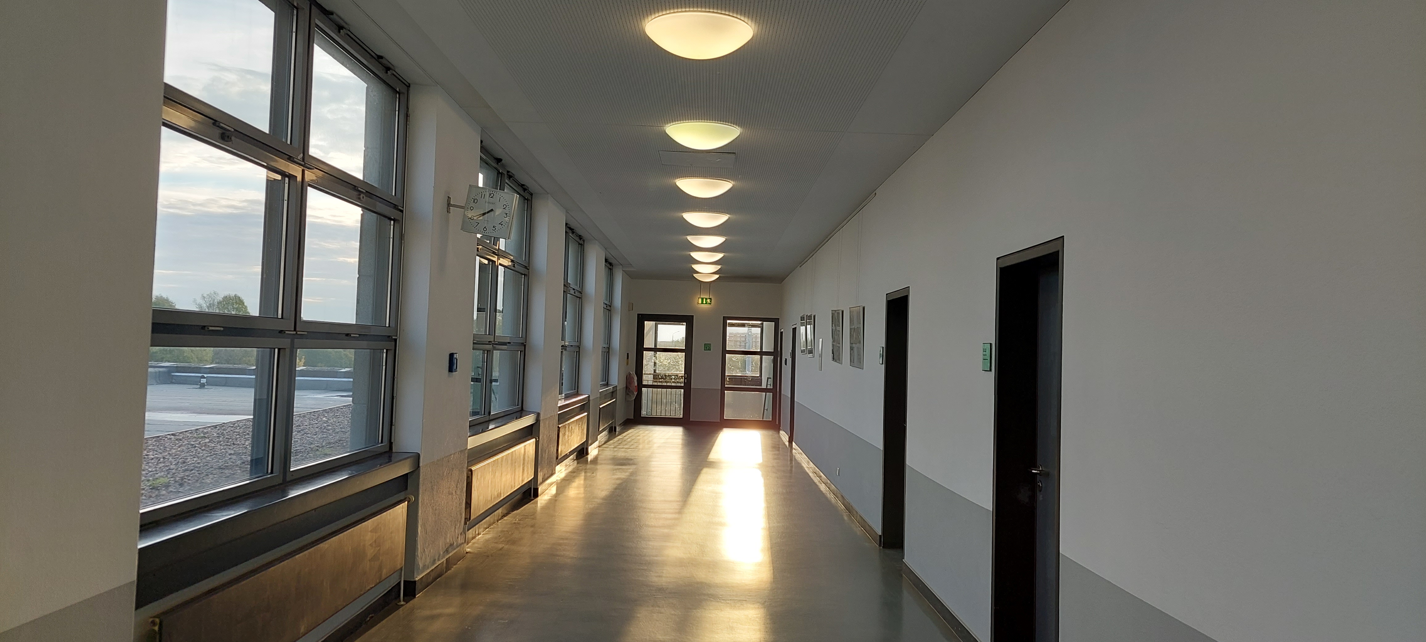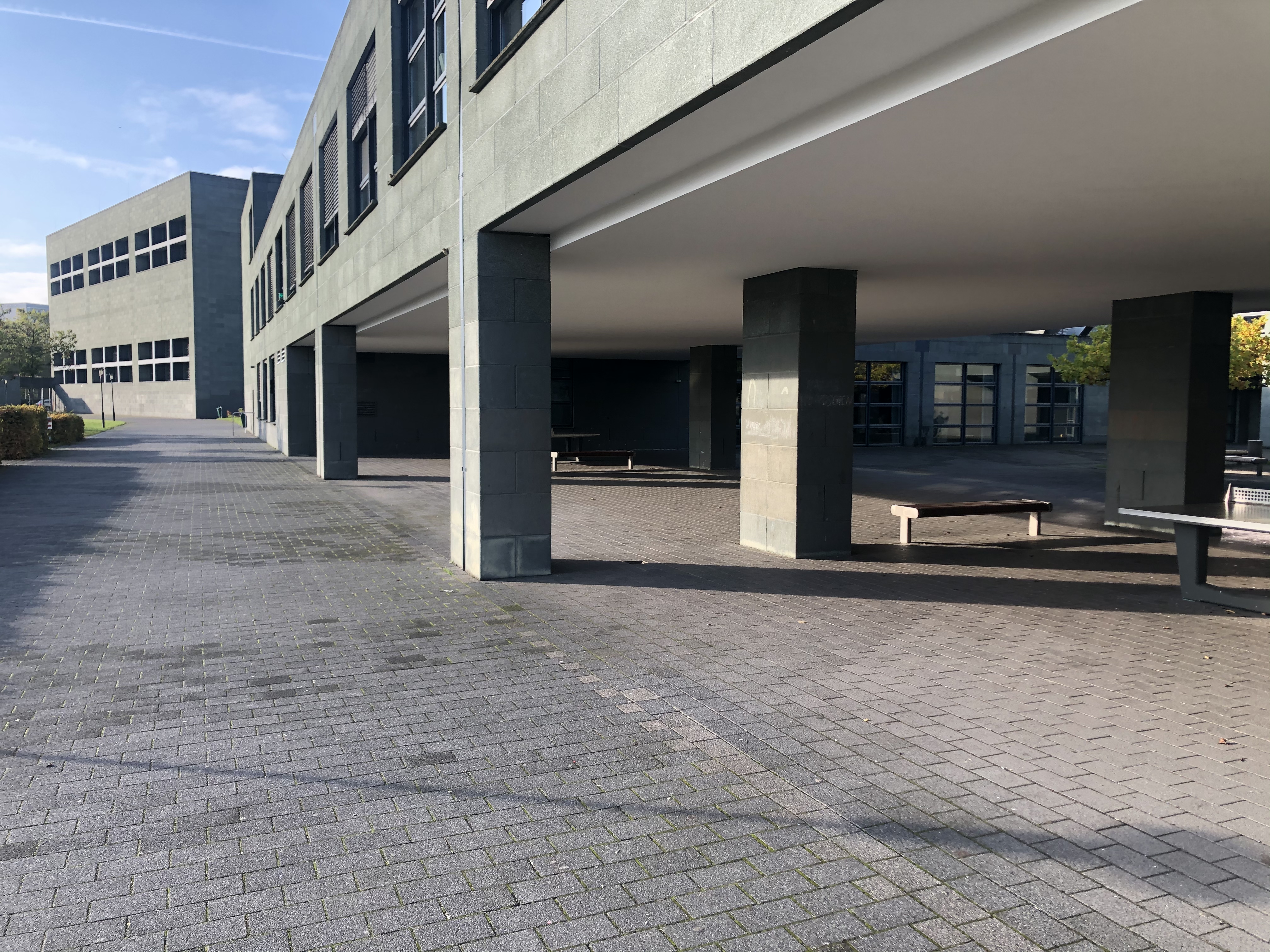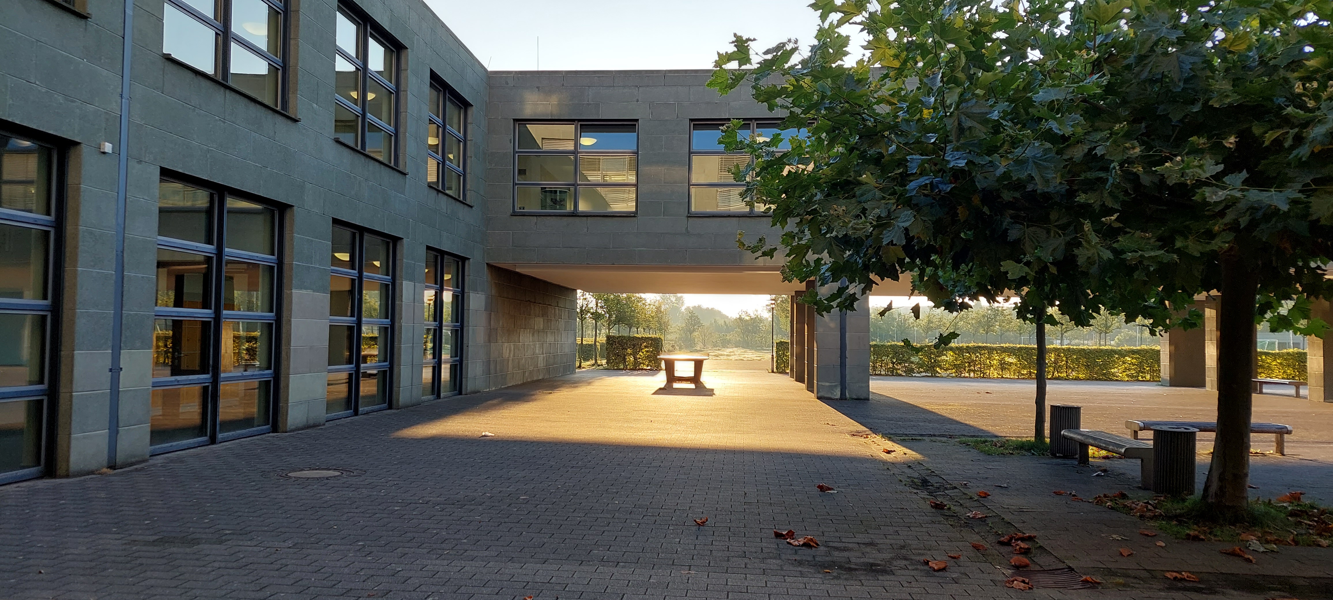 Ich weiß, die Schule hat aufgrund der Architektur den Beinamen „Knast“ in Social Media. Wenn man allerdings die Möglichkeit hat wirkt es im Herbstlicht und im Innern sehr lichtdurchflutet und offen. Hier finden Sie kleine Impressionen.