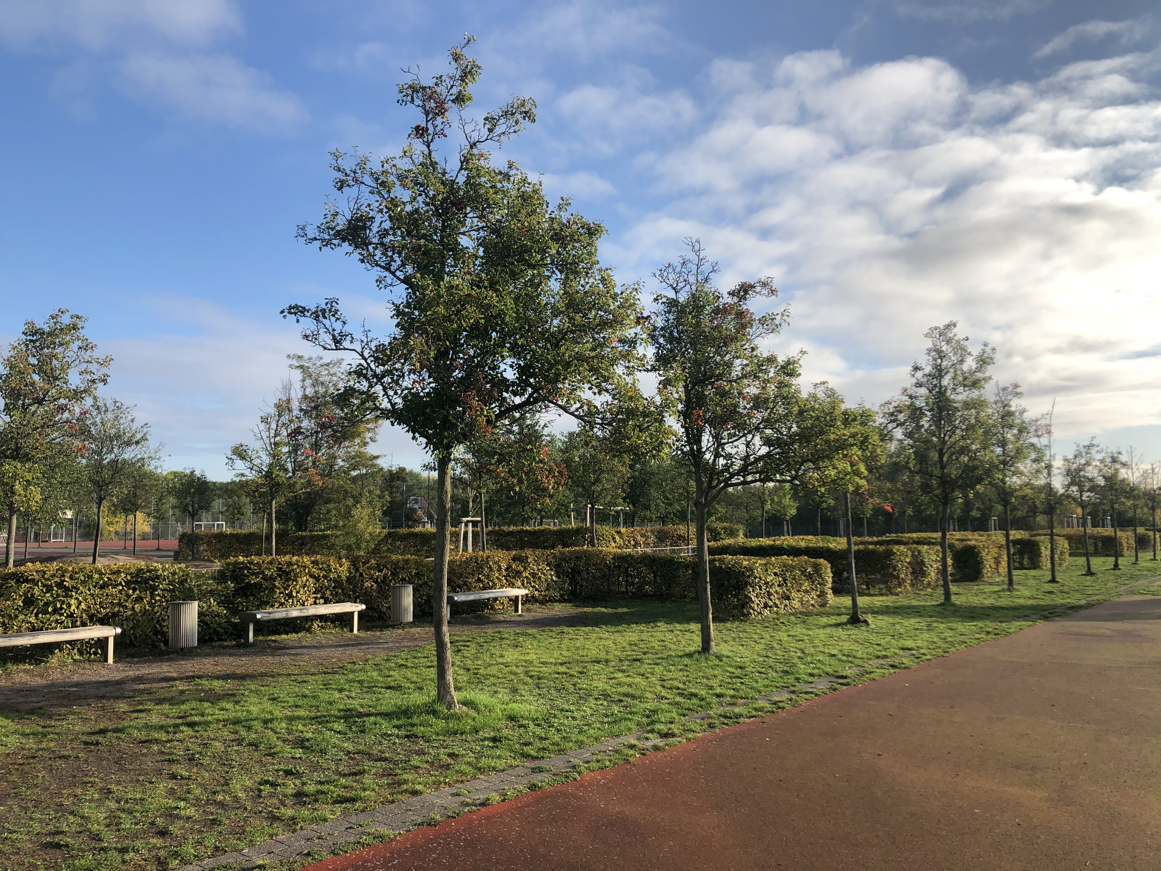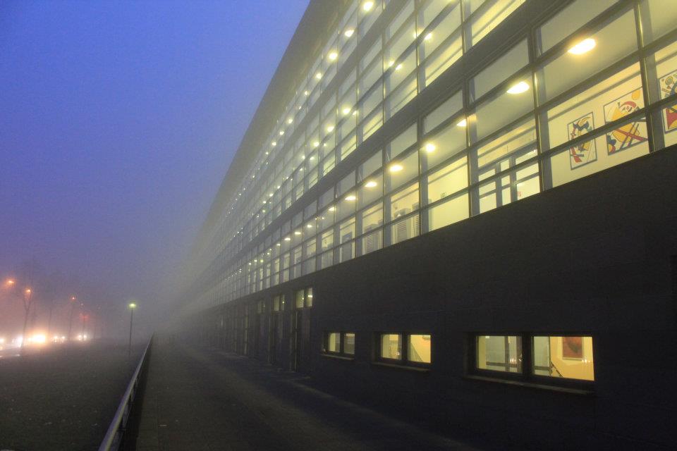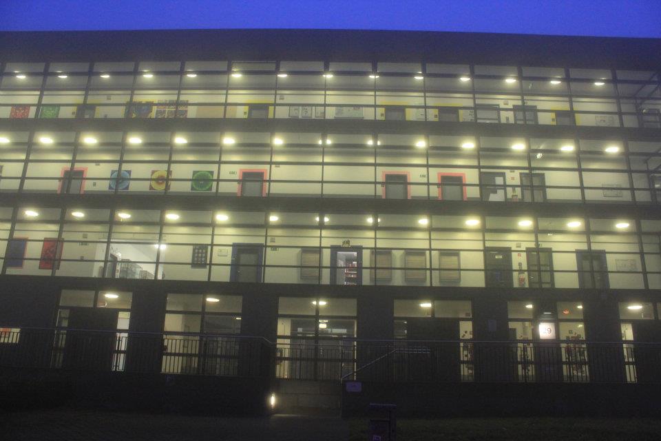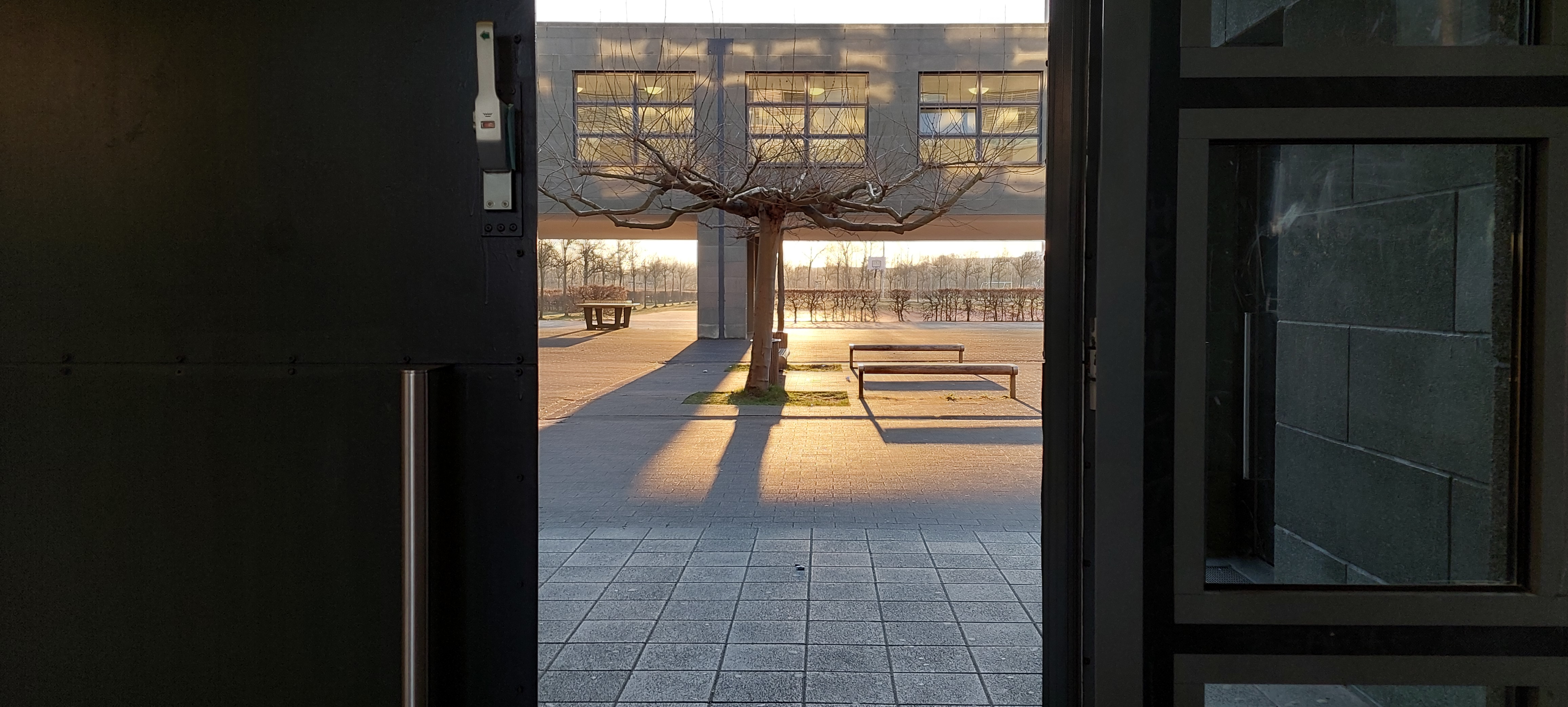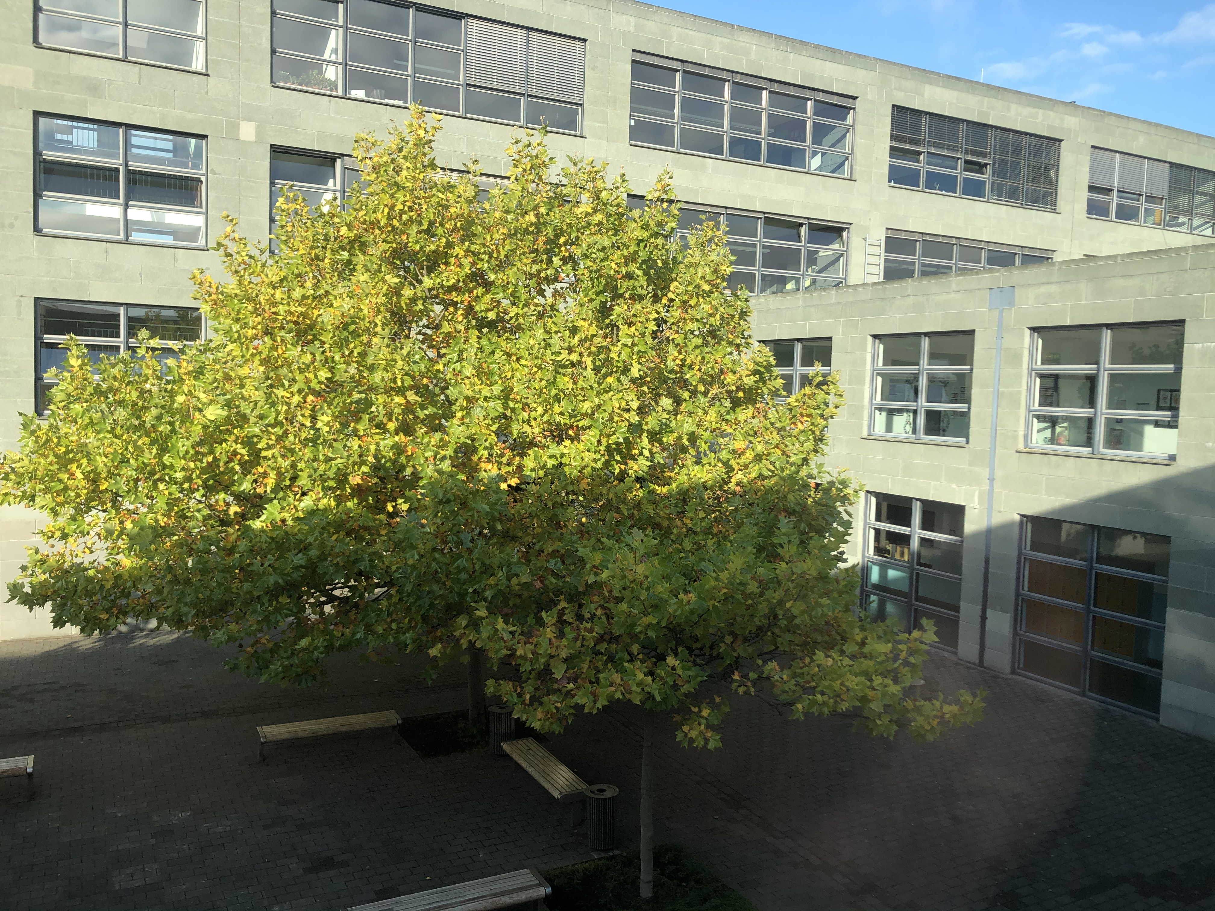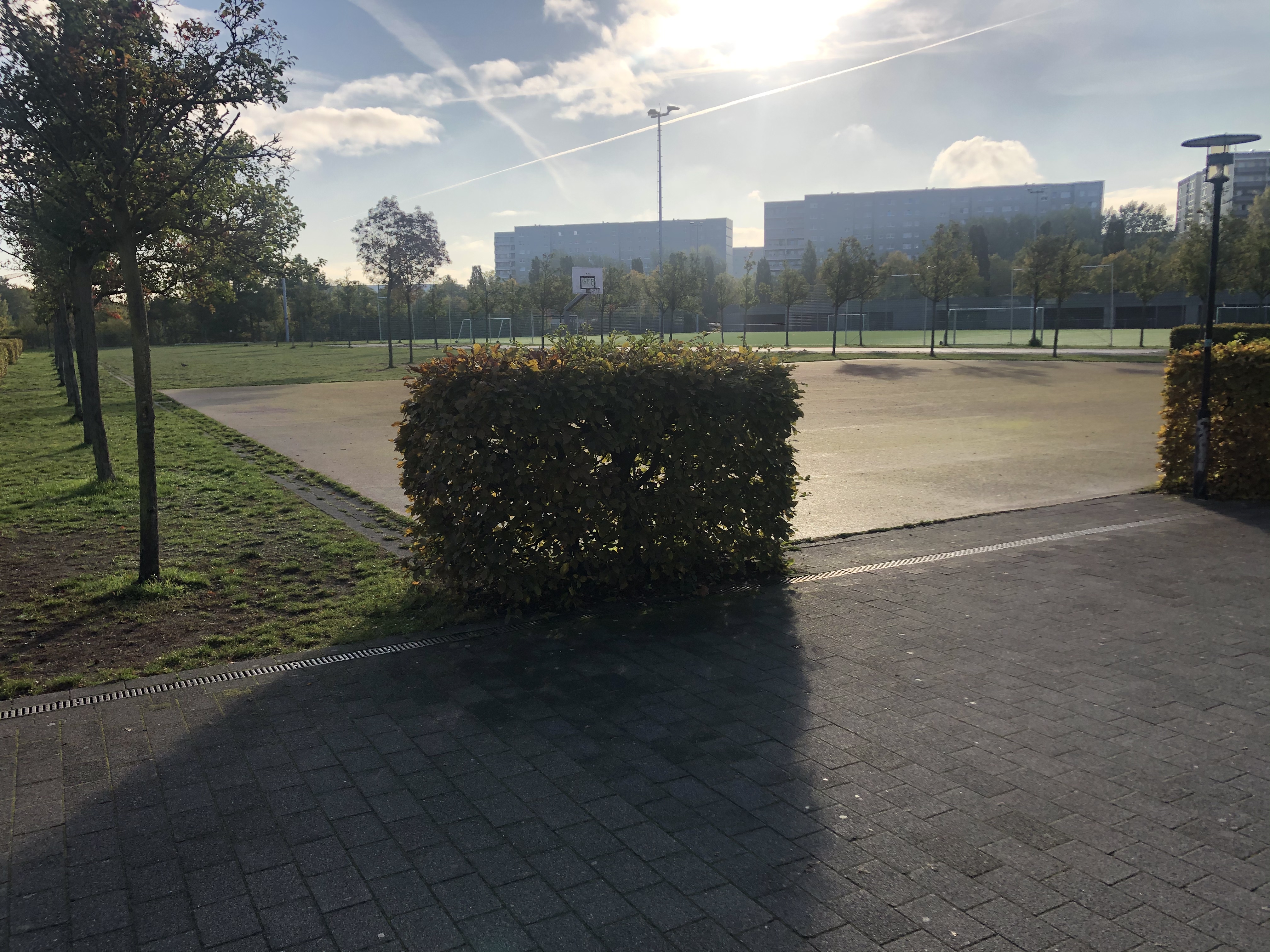 Ich weiß, die Schule hat aufgrund der Architektur den Beinamen „Knast“ in Social Media. Wenn man allerdings die Möglichkeit hat wirkt es im Herbstlicht und im Innern sehr lichtdurchflutet und offen. Hier finden Sie kleine Impressionen.