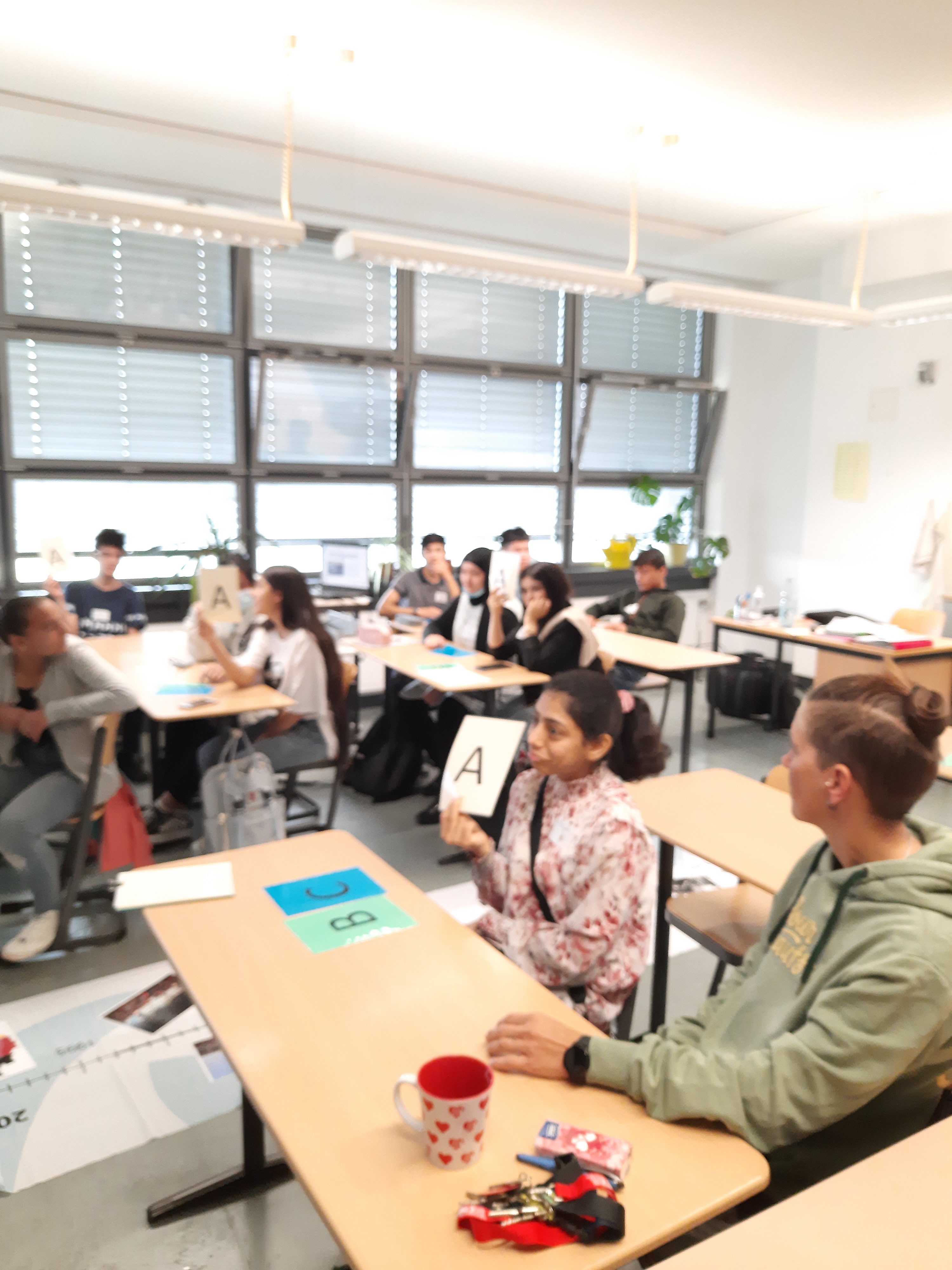 Was bedeutet eigentlich Demokratie? Und wie leben wir sie in Deutschland? Diesen Fragen gingen die Schüler*innen der Willkommensklassen 1 und 2 auf den Grund. Am 06.09.2022 konnten die jungen Erwachsenen erfahren und erspielen, welchen historischen Weg die deutsche Demokratie zurücklegen musste, um dort zu landen, wo sie heute steht.