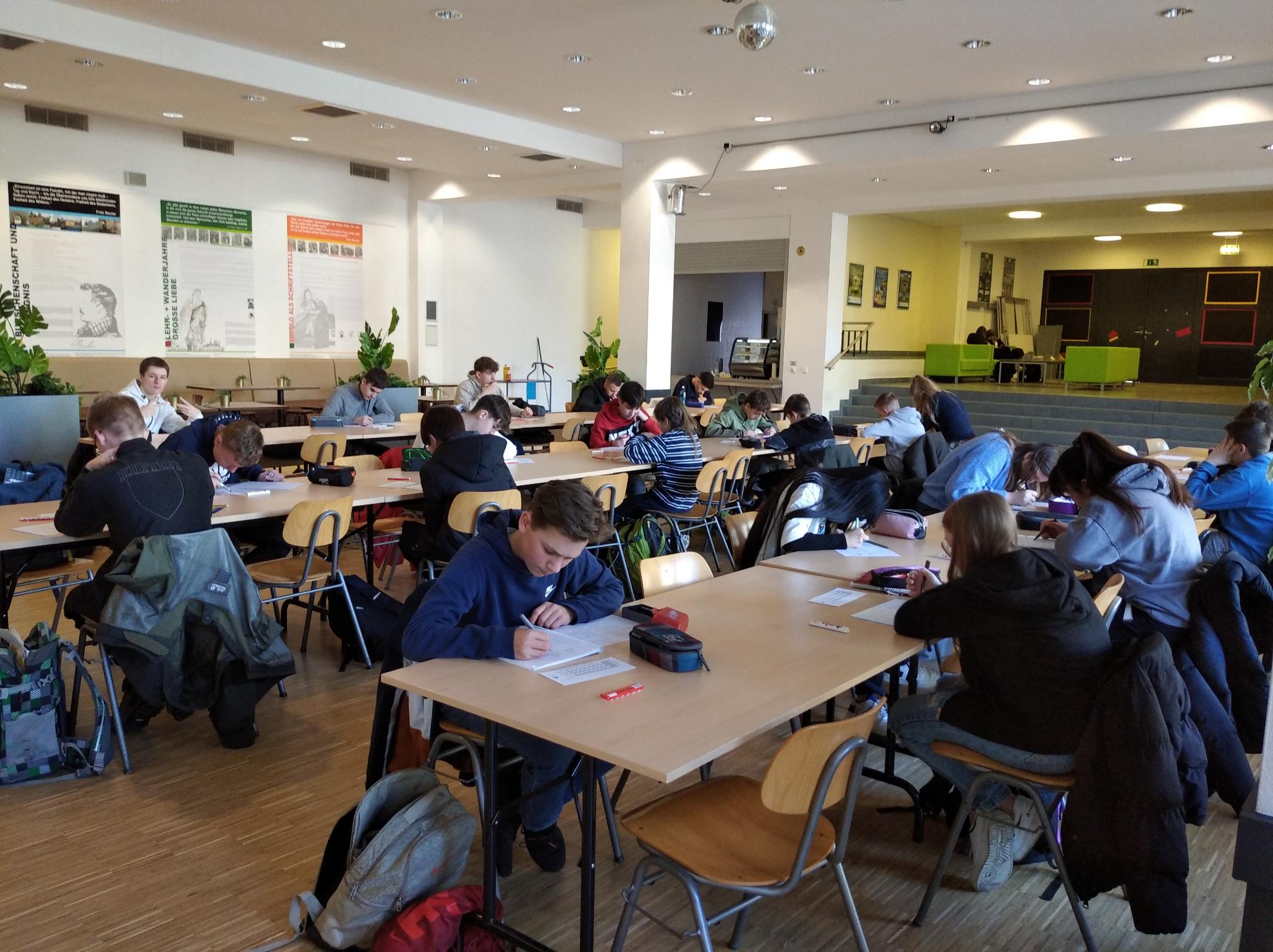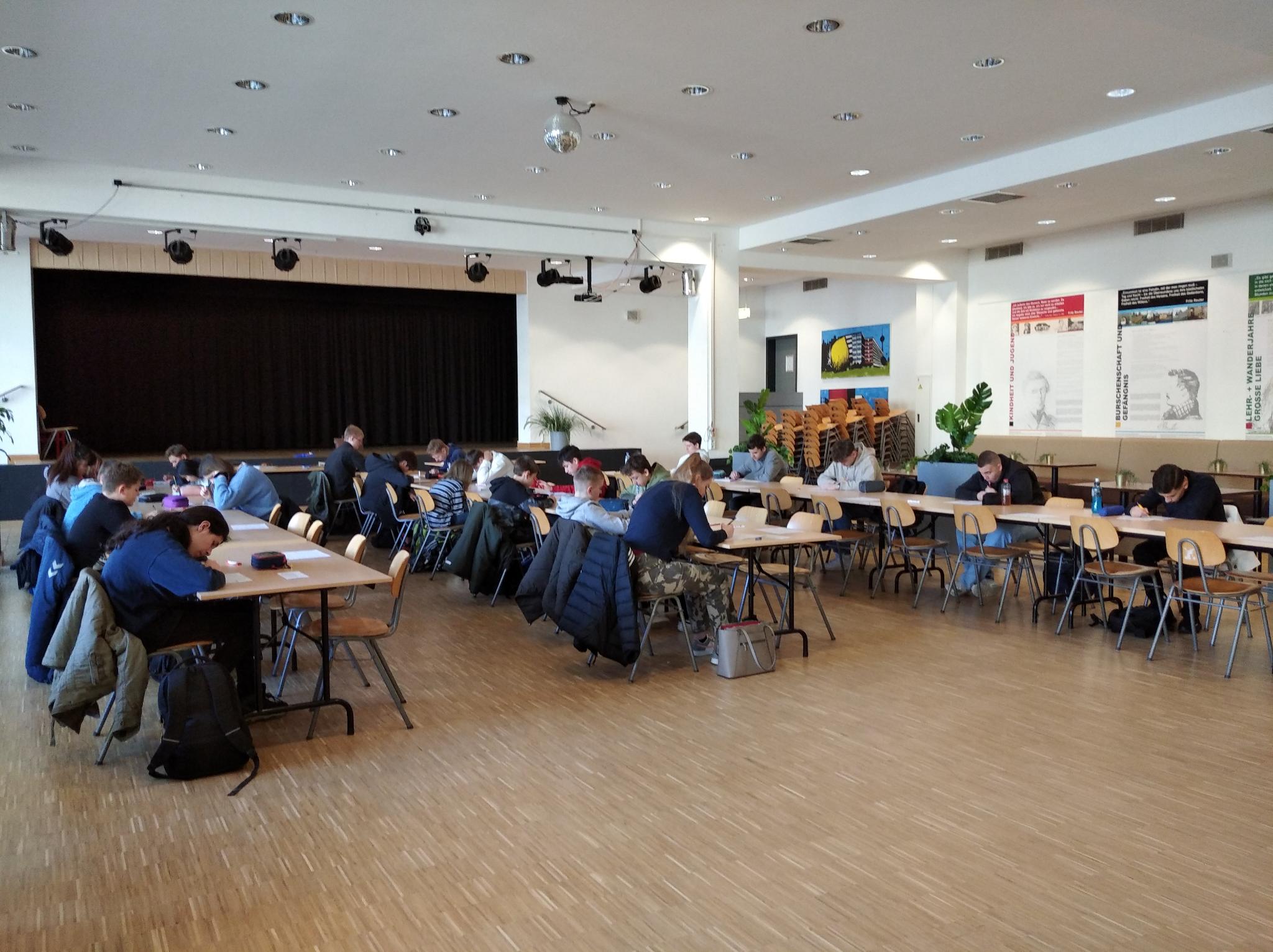 Auch dieses Jahr kamen wieder interessierte Schüler/innen unserer Schule zusammen, um am Känguru-Wettbewerb mit zu knobeln. Unter dem Motto „Wem gelingt eine Punktlandung“ traten über 40 Schüler/innen am 16. März 2023 an. Herr Steer und Herr Blümke begrüßten aus allen Jahrgängen von der 7. bis zur 11. Klasse Teilnehmer/innen in der Aula. Neben einer süßen Stärkung rauchten die Köpfe. Wir sind gespannt auf die Ergebnisse.