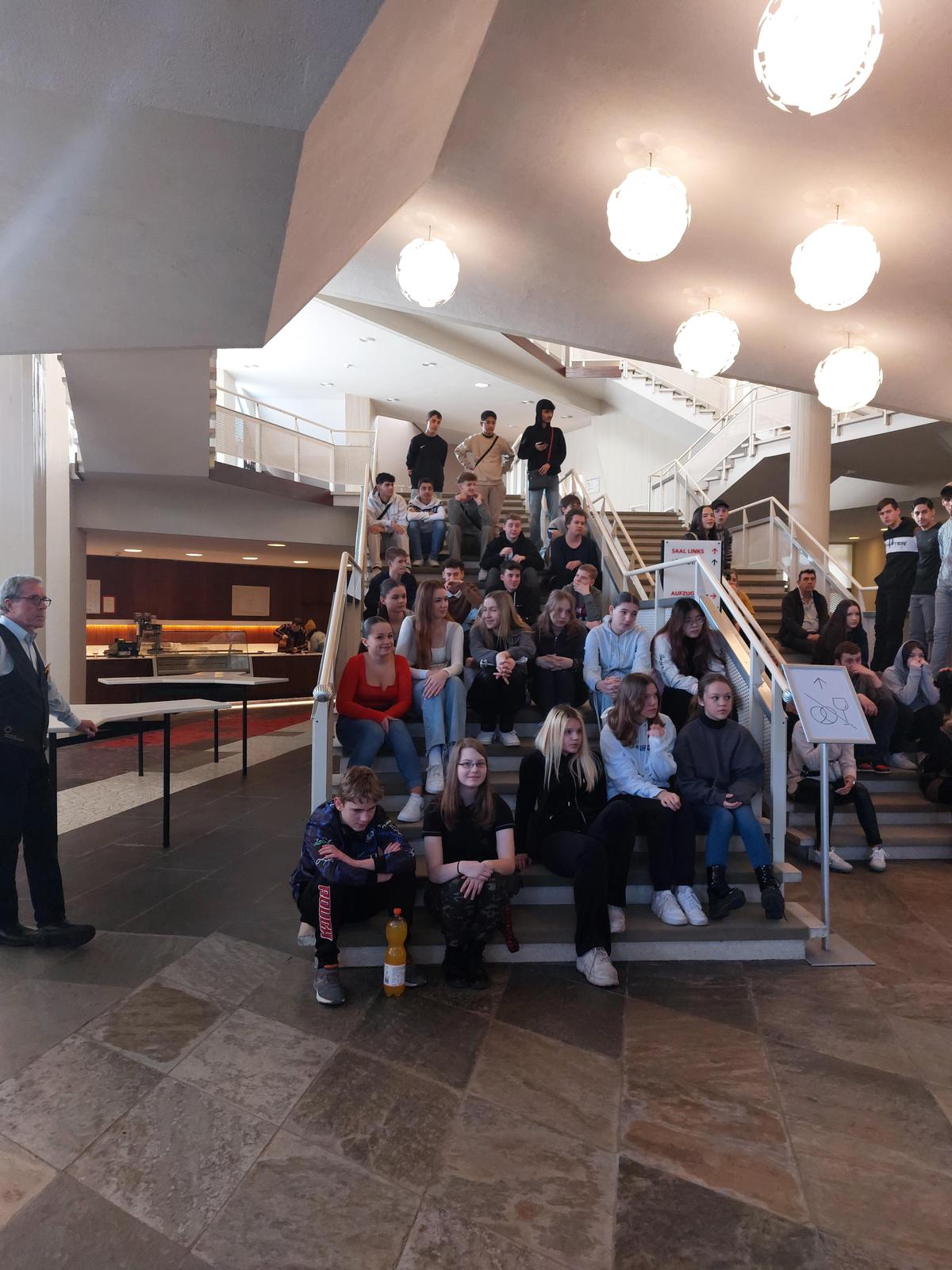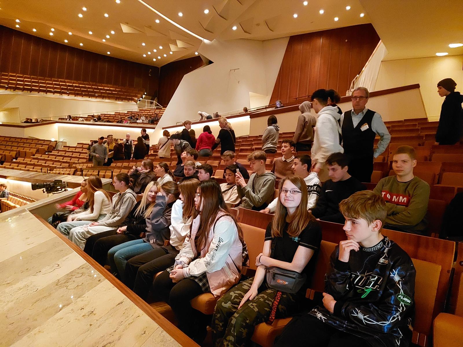 Am 16. Februar 2023 war wir, die Klasse 9.4, zusammen mit unserer Klassenleitung Frau Probst und Herrn Ulrich zu Gast in der Philharmonie. Zur Begrüßung durften wir einen der Musiker genauer kennenlernen und erfuhren viel Wissenswertes über seine Ausbildung und seine Arbeit. Anschließend sind wir in den modernen Konzertsaal gegangen. Besonders während des Bratchenkonzerts erkannten wir die gute Akustik in diesem Saal. Am Ende gaben wir alle ein kleines Feedback ab. Dies fiel sehr positiv aus, denn dieser Besuch hat uns sehr gefallen.