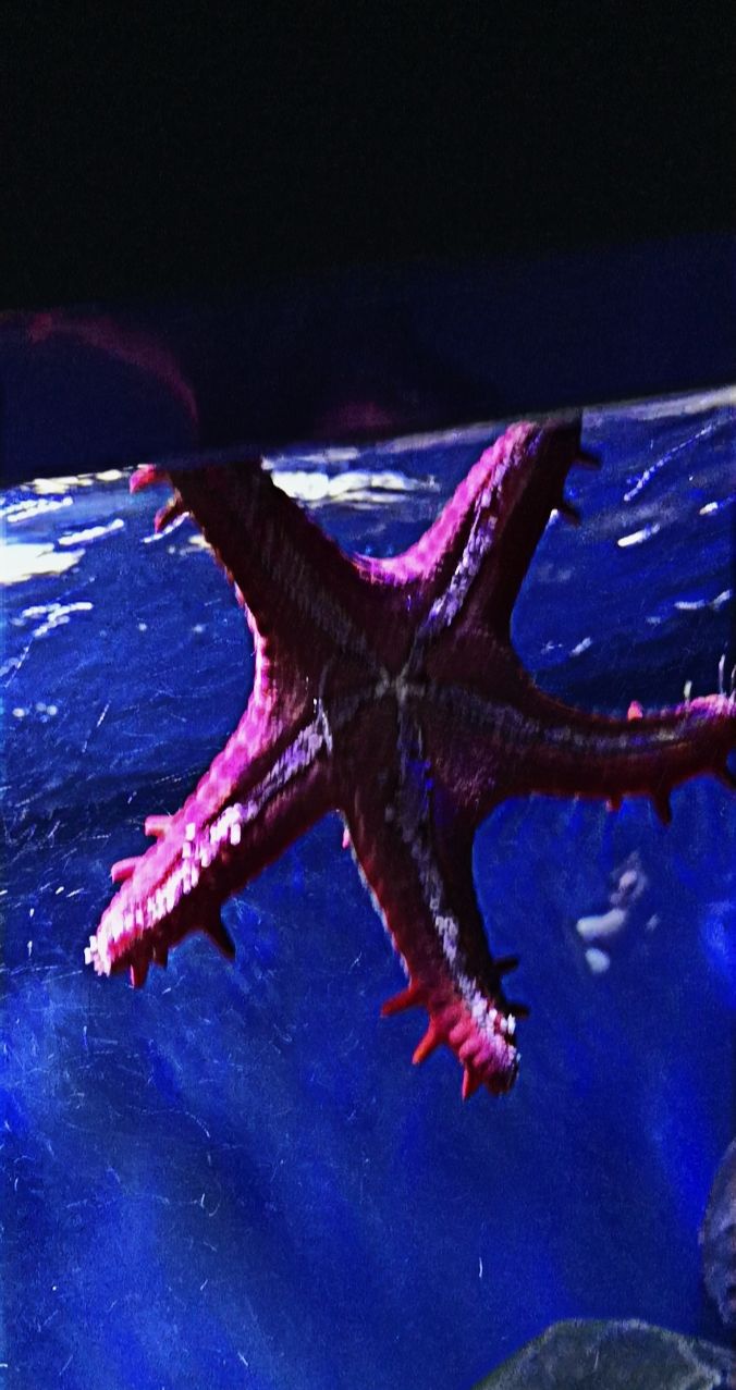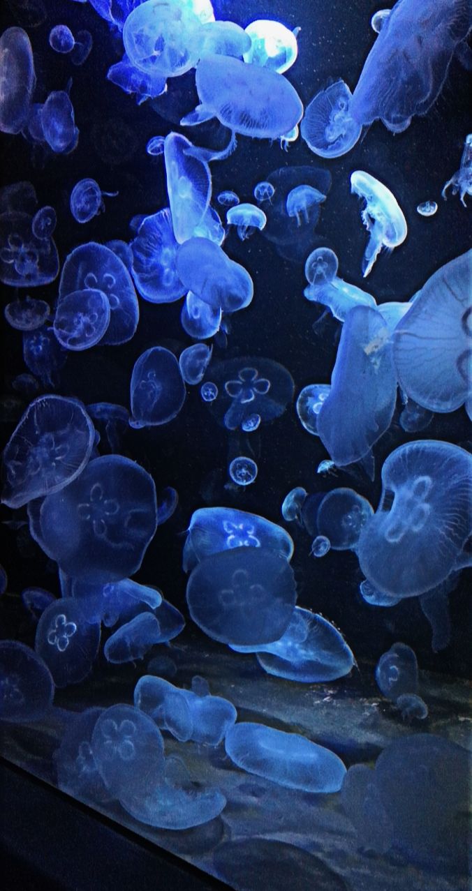 Los ging es mit den Quallen. Wir erfuhren viel Neues über sie und beobachteten fasziniert die Bewegungen. Anschließend ging es zu den Fischen- natürlich keine wirbellosen Tiere. Hier wurden wir aber in die Welt von Nemo versetzt und erfuhren welche Bedingungen diese Fische brauchten. Es war sehr dunkel und entspannend auf diesem Rundgang. Dann ging es in die zweite Etage-außerplanmäßig- zu den Amphibien. Die gehören natürlich auch nicht zu den Wirbellosen. Der nächste Haltepunkt war bei den Insekten. Hier durften wir eine Stabheuschrecke auf die Hand nehmen. Kostete einigen große Überwindung.