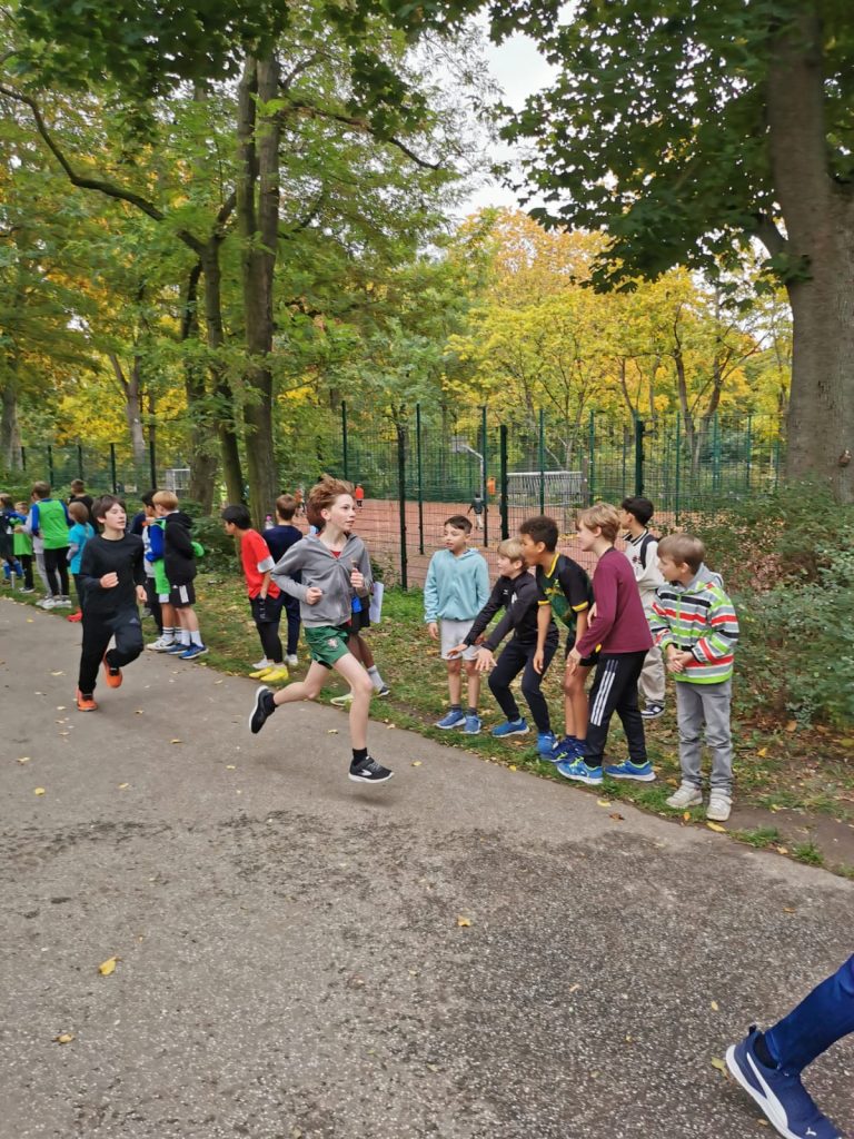 Am Freitag, dem 10. Oktober 2025 trafen sich wieder die sportlichsten Schülerinnen und Schüler des Bezirks im Park an der Parkaue und liefen unter typischen Crosslauf-Bedingungen – kühl, leichter Wind und etwas Nieselregen – über Stock und Stein.