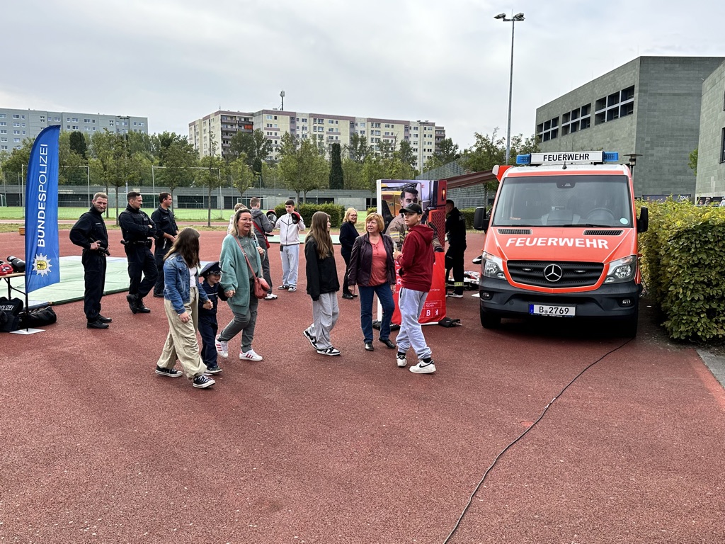 Am 21. September 2024 findet von 10 bis 14 Uhr auf dem Schulgelände der Fritz-Reuter-Oberschule unser alljährlicher Blaulichttag der Bundespolizei, Berliner Feuerwehr, Zoll und der DB-Sicherheit statt.