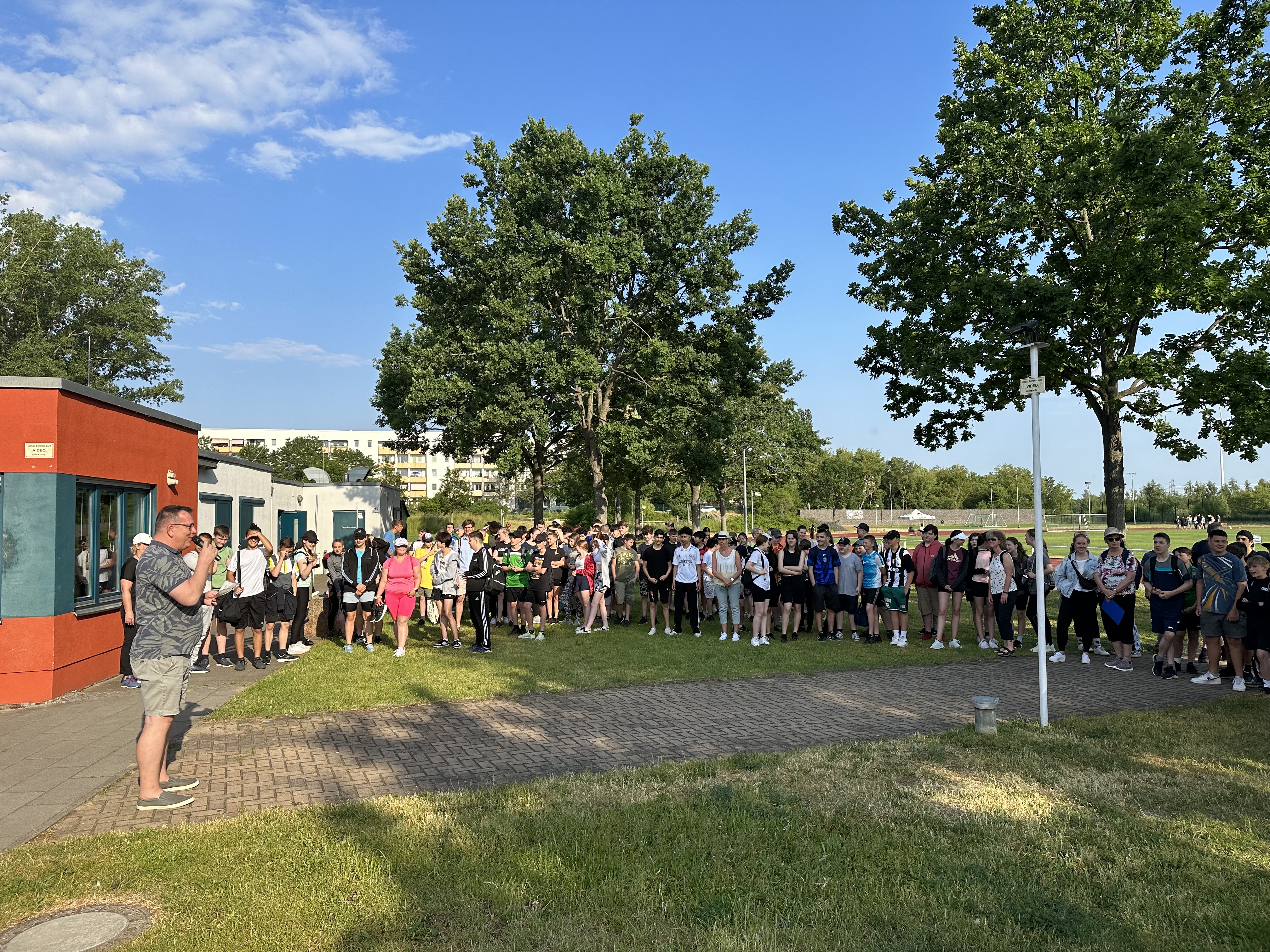 Ist dieser heutige Tag (09. Juni 2023) „Besser als Schule“? Dies könnte man meinen. Ich aber bin überzeugt, dass durch die heutige Leistungsanstrengung, durch den Kampfgeist und die Zusammenarbeit im Team deutlich wird, dass auch dies Schule ist. Ich hoffe, dass diese Anstrengungen dazu führen, dass im Sprint, im Ballwurf, im Weitsprung oder Kugelstoßen die bisherigen Bestleistungen übertroffen werden. Vielleicht findet man dann neue Namen, die die Vitrine im Schulfoyer schmücken. Dies wünsche ich allen Beteiligten. Vielen Dank an den Fachbereich Sport für die Organisation und Durchführung und vielen Dank dem 12. Jahrgang für die tatkräftige Unterstützung.